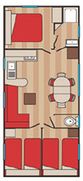 – Coin repas avec convertible en lit d’appoint de 130 cm.