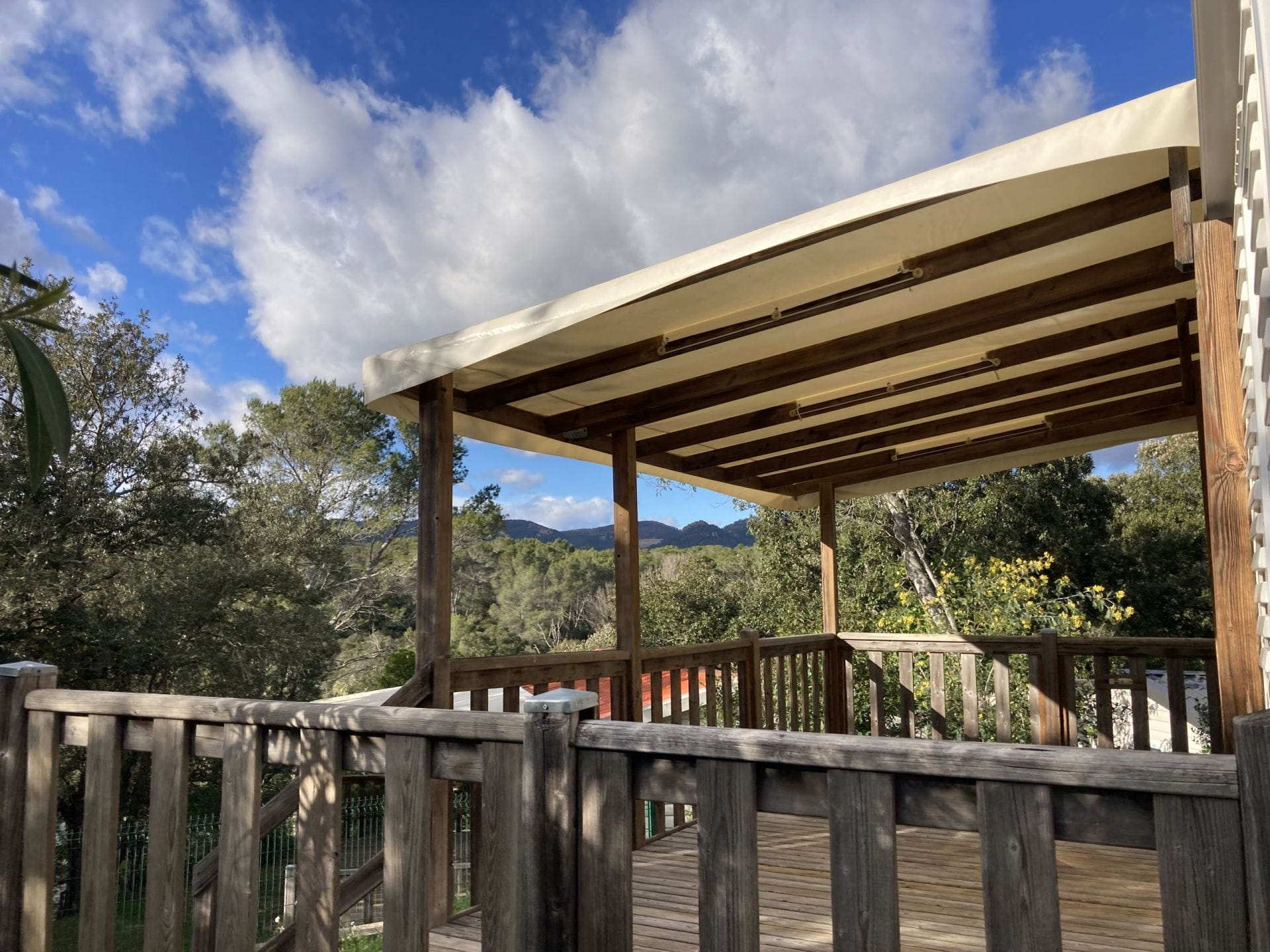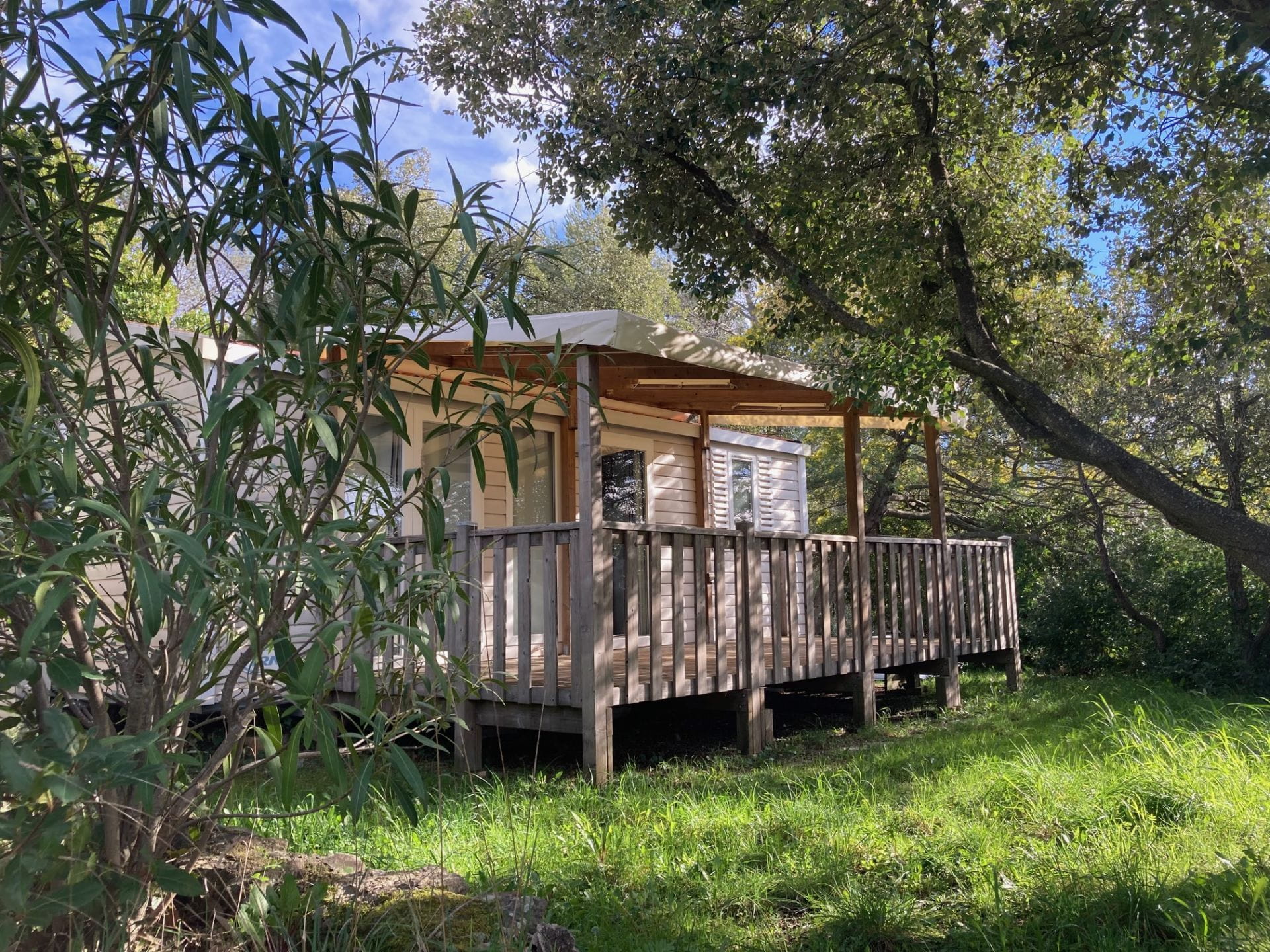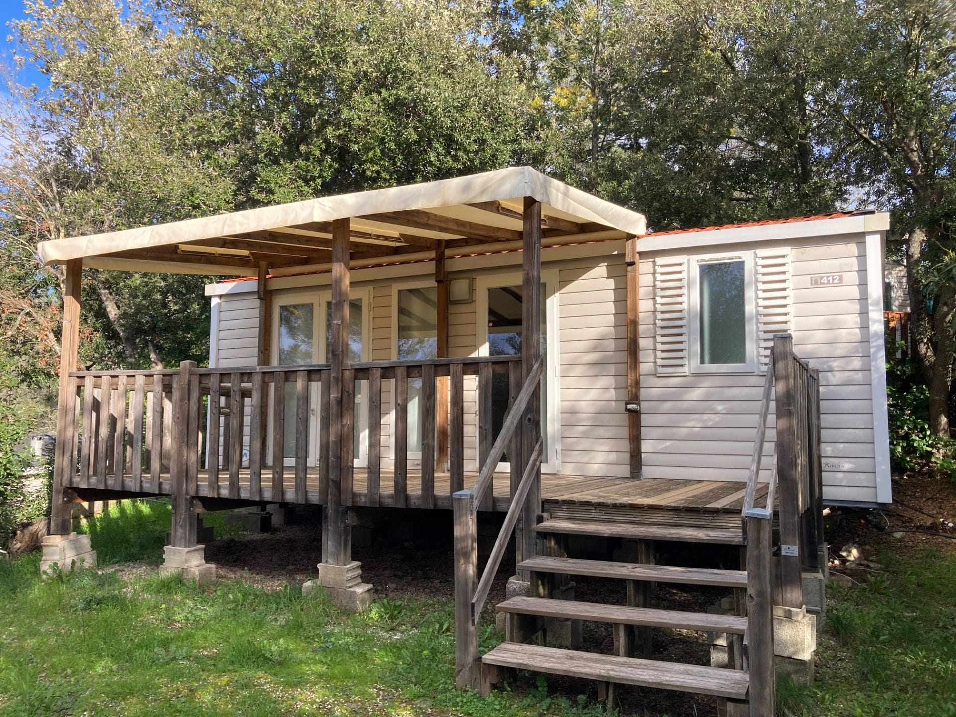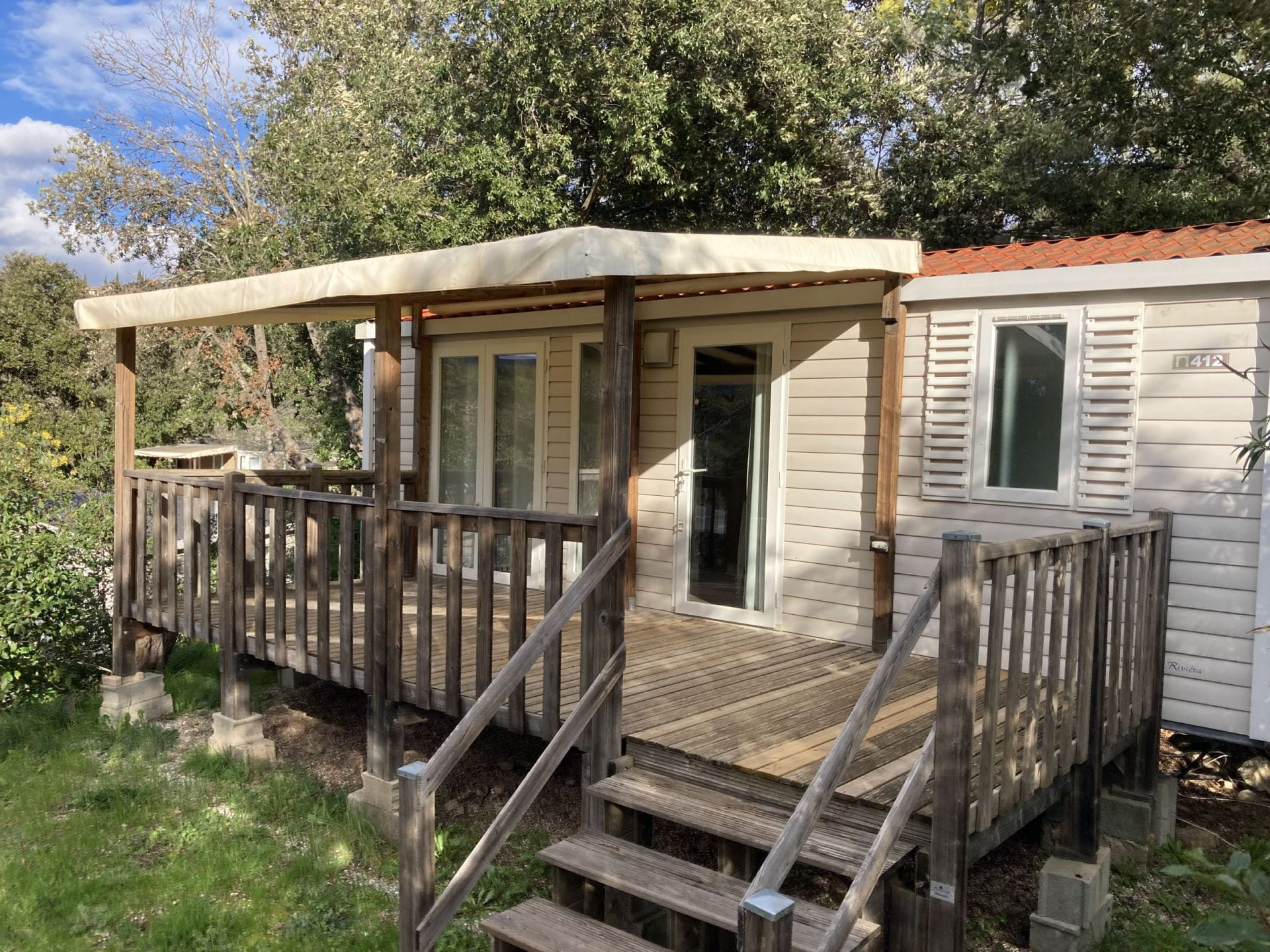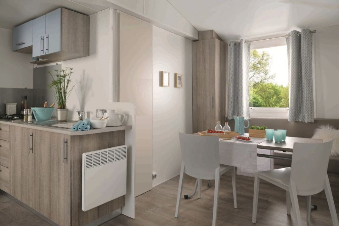 • Cuisine ouverte sur la terrasse et équipée de 4 plaques gaz, four micro-ondes, cafetière électrique, frigo congélateur, vaisselle et ustensiles de nettoyage.